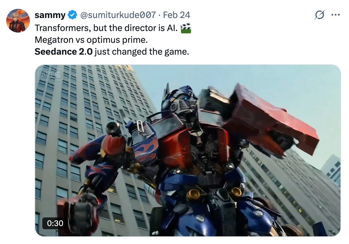 The whole thing was kicked off by the launch of Seedance 2.0. This new model is surprisingly capable of deep levels of copyright infringement and the imagination-less have pished that to the limit. Sometimes it’s people bragging about their “original” movie that’s somehow worse than just not making anything at all, but often these sexless losers are compelled to make two pop culture figures fight. It always seems to be fighting. Like the Predator or the Terminator. Or Dwight and Michael Scott from The Office. Or, the most famous of these situations, Tom Cruise and Brad Pitt: